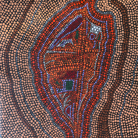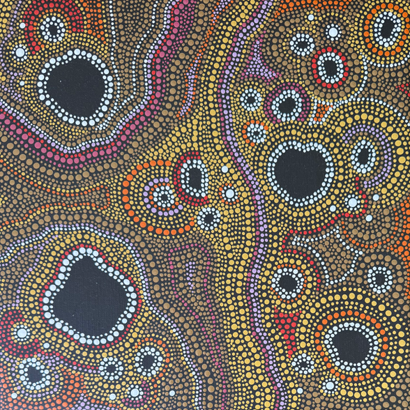 A Gamilaraay, Bigambul, Yuwaalaraay artist with kinship connections to Yorta Yorta mob through her paternal line. Arkeria has spent the past decade developing her ways of storytelling through the medium of Acrylic on Linen.